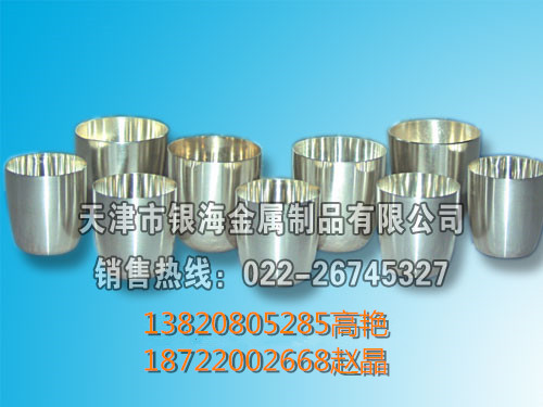 天津市銀海金屬制品有限公司主要生產(chǎn)加工鉑金坩堝、鉑金皿、黃鉑合金異形坩堝、鉑金絲、黃金坩堝、銀坩堝、銀燒杯、鐵坩堝、鎳坩堝、包鉑坩堝鉗子、瑪瑙研缽、純銀絲、純銀片、銀粉、剛玉坩堝等金屬制品,我公司的生產(chǎn)工藝嚴(yán)謹(jǐn)、技術(shù)先進(jìn)、經(jīng)驗(yàn)豐富,產(chǎn)品銷(xiāo)往全國(guó)各地。 公司承諾:保證產(chǎn)品價(jià)格優(yōu)惠、質(zhì)量可靠,熱情周到的服務(wù),歡迎廣大新老客戶選購(gòu)我公司產(chǎn)品。